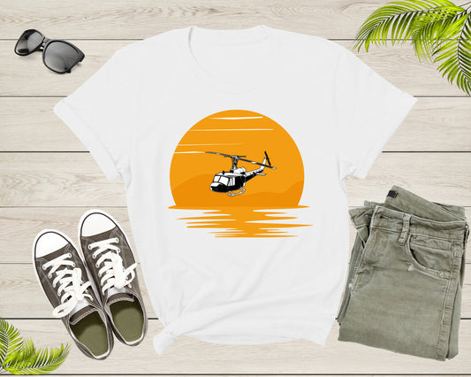 UH-1 Huey Chopper Helicopter Flying at Sunset for Men Women Kids T-Shirt Pilot Aviator Aviation Gift T Shirt for Boys Girls Teens Tshirt