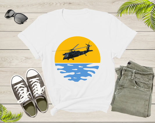 UH-60 Sea Helicopter Chopper Sikorsky Flying at Sunset T-Shirt Pilot Aviator Aviation Gift T Shirt for Men Women Boys Girls Teens Tshirt