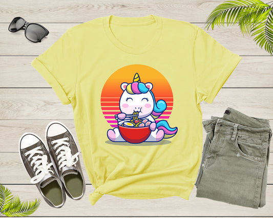 Unicorn Character Eating Japanese Ramen Noodle Retro Sunset T-Shirt Japanese Ramen Noodle Foodie Shirt Ramen Lover Gift Noodle Lover Gift