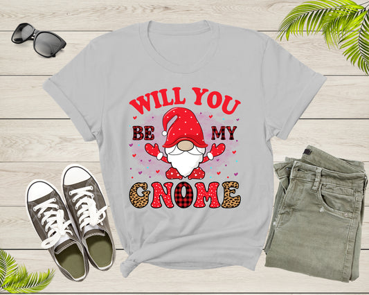 Valentine's Day Will You Be My Valentines Red Gnome Gifts T-Shirt Cute Gnome Shirt Valentines Day Gift Love Shirt Gnome Love Heart Tshirt