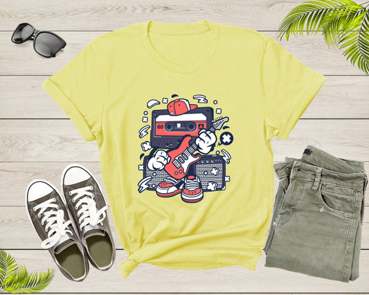 Vintage Music Cassette Tape Playing Guitar for Men Women Kid T-Shirt Guitarist Guitar Player Lover Gift T Shirt for Girls Boys Teens Tshirt