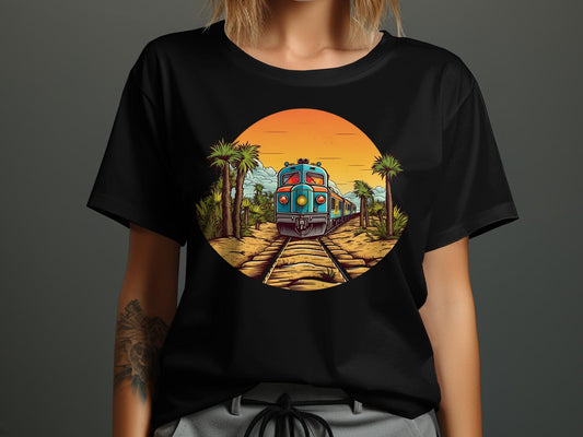 Vintage Train Steam Locomotive Tshirt, Sunset Train Mens TShirt, Unisex Shirt, Youth Shirt, Cool Train Lover Gift Boys Girls Gifts