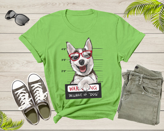 Warning Be Aware of Dog Husky Cute Eskimo Dog Puppy Pet Dog T-Shirt Dog Lover Owner Gift T Shirt for Men Women Boys Girls Teens Tshirt