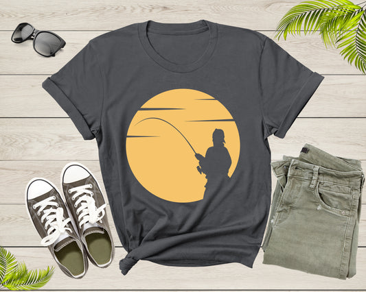 Cool Fisherman Fishing by the Lake at Sunset Fishing Rod T-Shirt Fisher Shirt for Men Women Kids Boys Girls Fishing at Sunset Gift Tshirt