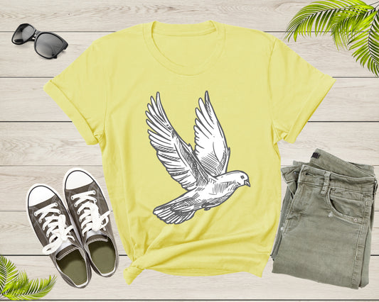 Cool Flying White Dove Pigeon Bird Animal Sketch Art Drawing T-Shirt Dove Pigeon Bird Lover T Shirt Gift for Men Women Kids Boys Girls