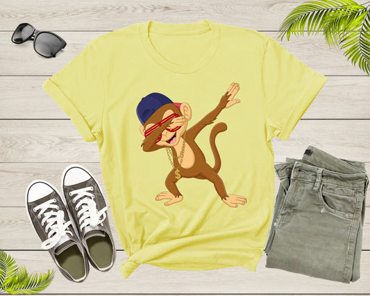 Cool Dabbing Dancing Monkey Wearing Sunglasses Hat Necklace T-Shirt Monkey Shirt for Men Women Kids Boys Girls Teens Graphic Gift Tshirt