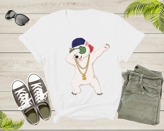 Cool Dabbing Dancing Polar Bear Wear Sunglasses Hat Necklace T-Shirt